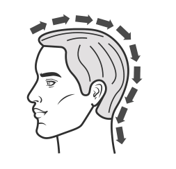 ● Scrape from chin along jaw line towards the ears (both sides)